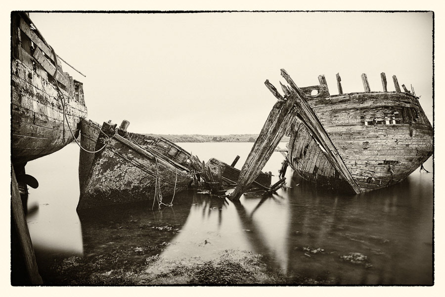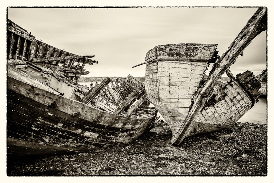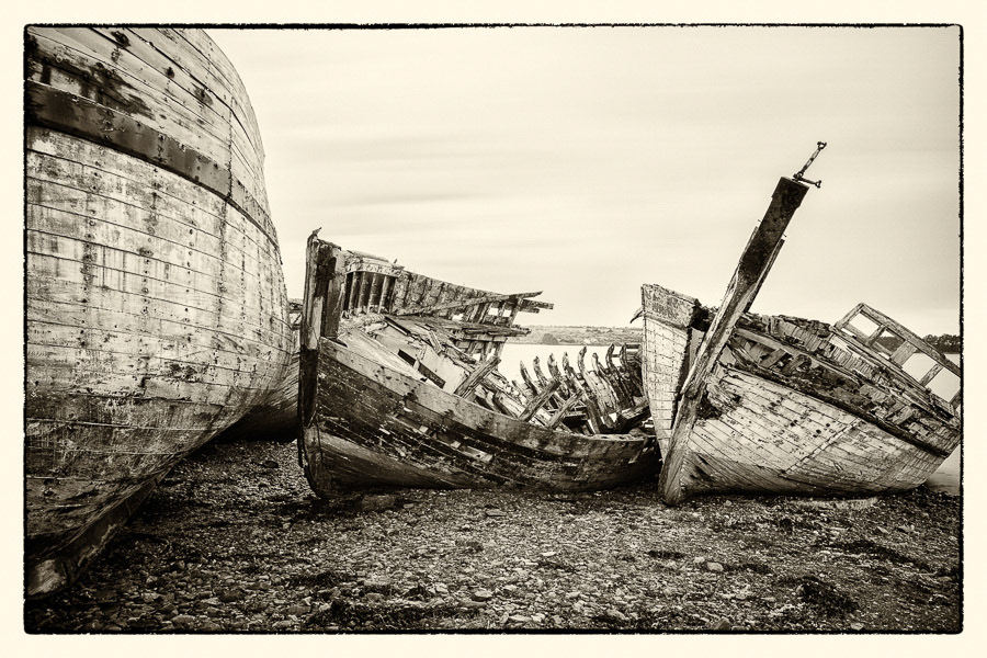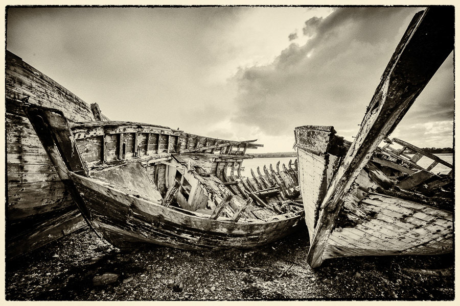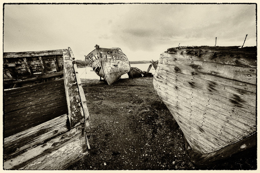Une beauté certaine se dégage de ces fiers navires de pêche à l'agonie sur ce coin de gréve
